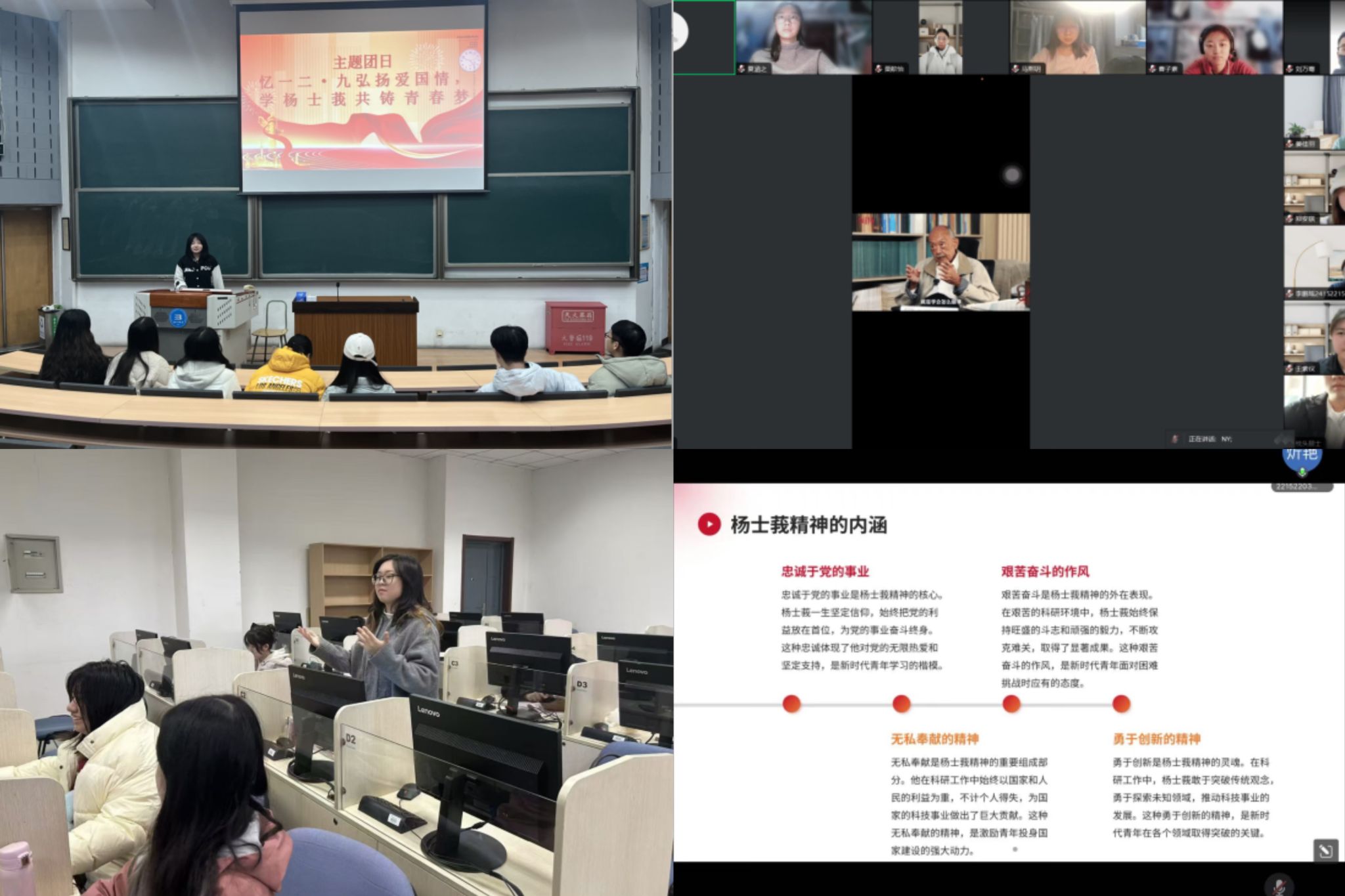 221522团支部通过阅读杨士莪院士相关著作和报道、感受杨士莪院士攻克难题的坚持和他对国家和科研事业的热爱231522团支部开展读书沙龙活动,通过研读一二·运动相关历史书籍,深入学习一二·运动精神,分享读书收获与对爱国主义精神的理解241522团支部通过观看《时代楷模发布厅》中关于杨士莪院士的专题节目开展主题讨论,让楷模精神化作砥砺前行的强劲动力;24级外国语言文学团支部组织团员集中观看一二·相关纪录片,随后分组讨论并撰写心得感悟,交流历史与当下爱国精神的传承与践行。