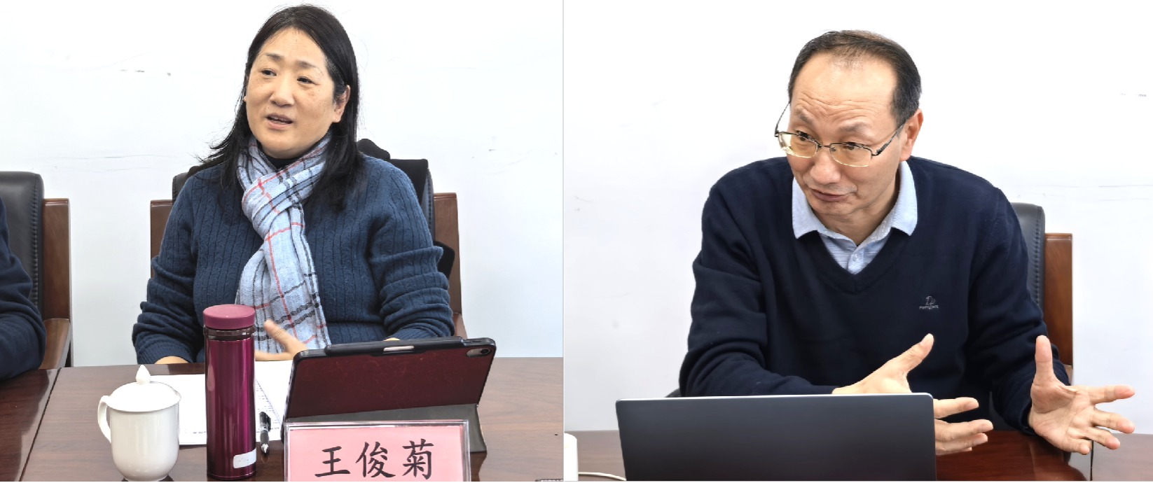 在互动交流环节,公司领导和入会教师积极提问,就学科发展定位、科研方向凝练、人才队伍建设与学科创新路径等方面的具体问题与两位教授进行了深入探讨。两位教授耐心解答,为公司新阶段的学科发展提供了高水平、前瞻性的指导建议,现场气氛热烈而融洽。