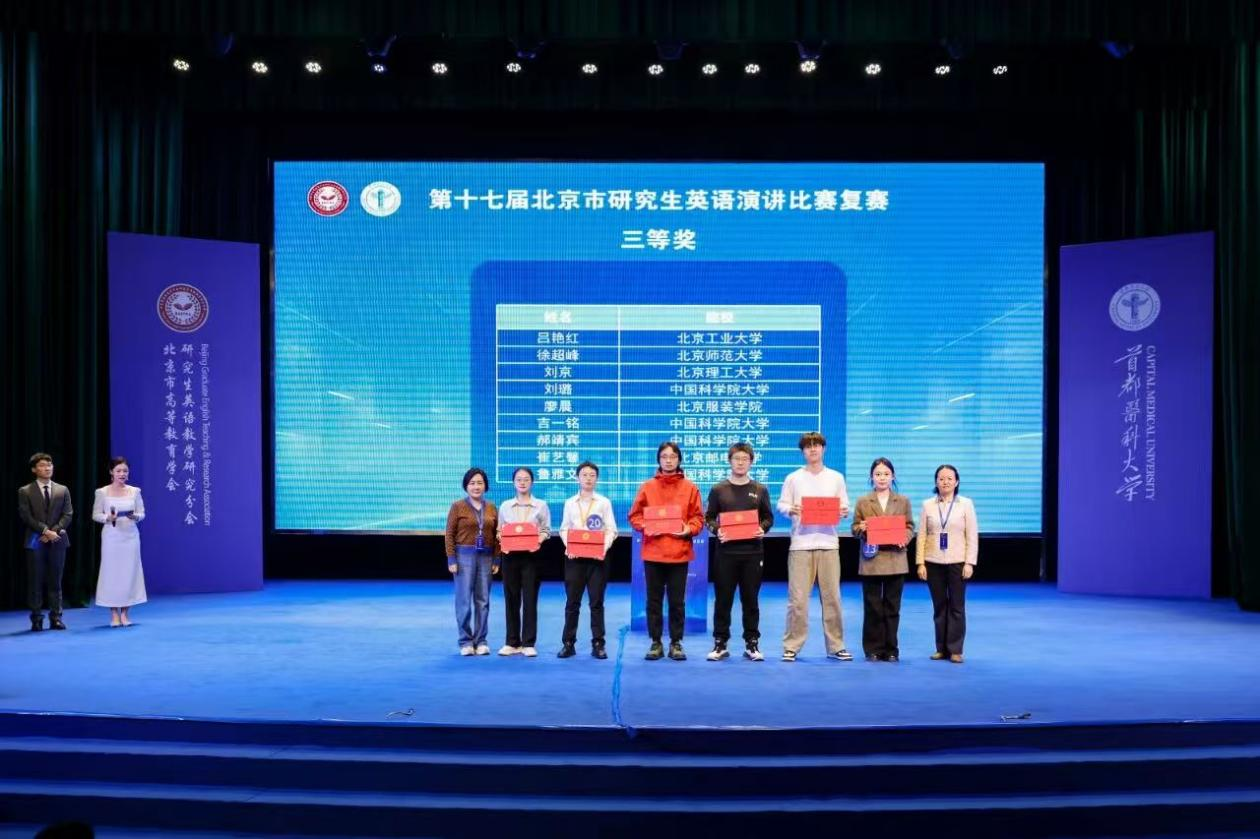 近日,“第十七届北京市研究生英语演讲比赛”复赛在北京师范大学、北京邮电大学、首都医科大学三大赛区圆满落幕。公司潘钰涵、吕艳红、王之玥、关锦然四位硕士研究生凭借扎实的英语功底、出色的现场表现与深刻的主题阐释,从来自全市35所高校的123名优秀选手中脱颖而出,全部荣获三等奖。