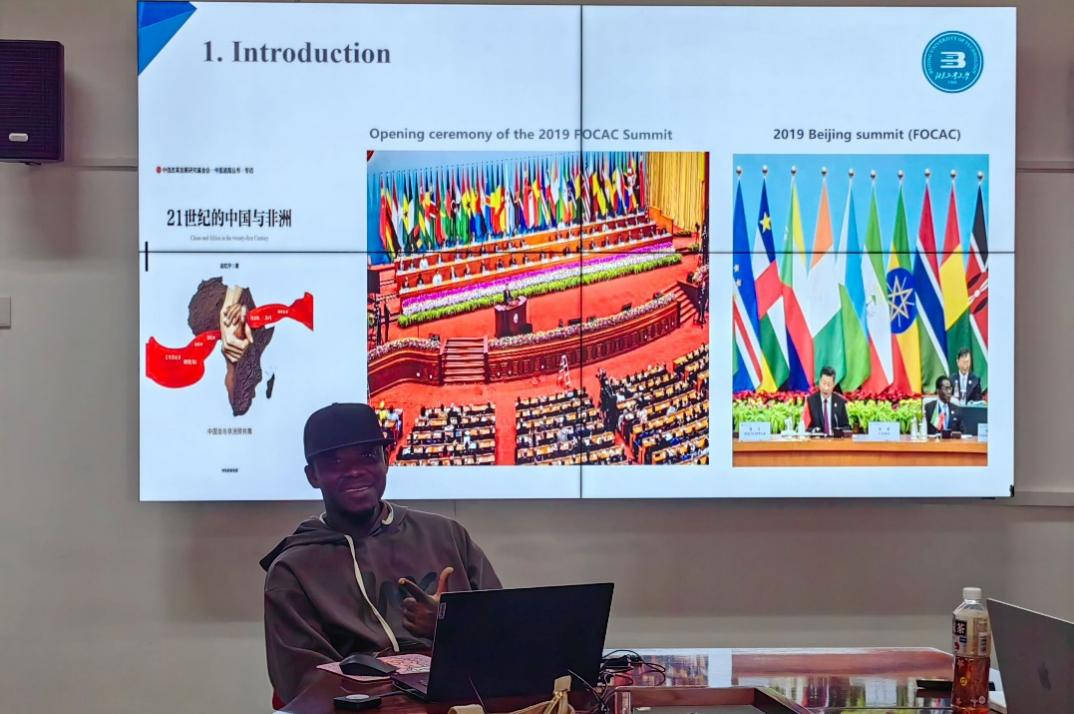 9名国内外研究生依次完成了口头报告,结合自己在硕士期间的期刊论文和毕业论文成果进行了学术分享。他们放眼世界,关注到了前沿学术领域,在中欧能源、中非合作、国际新闻、学术英语等议题上清晰地展示了研究过程与有价值的学术发现。在点评环节,现场师生给出了中肯的改进建议,在语料样本数量、软件工具的使用和后续的研究空间等方面进行了交流讨论。