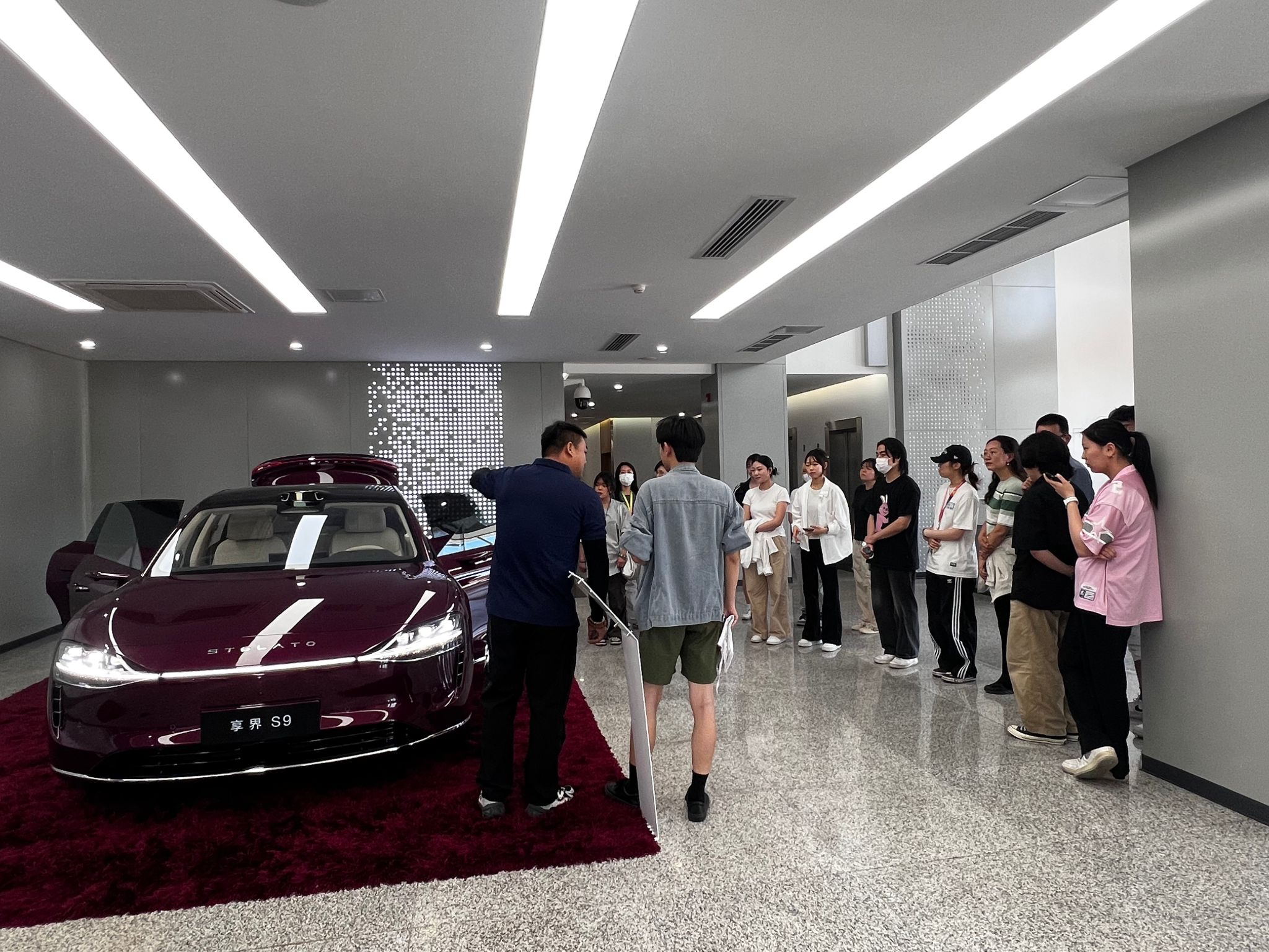 最后员工们在工作人员引领下来到科技展厅,亲身体验享界S9电动汽车的智能座舱系统,并向工程师们仔细了解汽车的基本情况与主要功能。