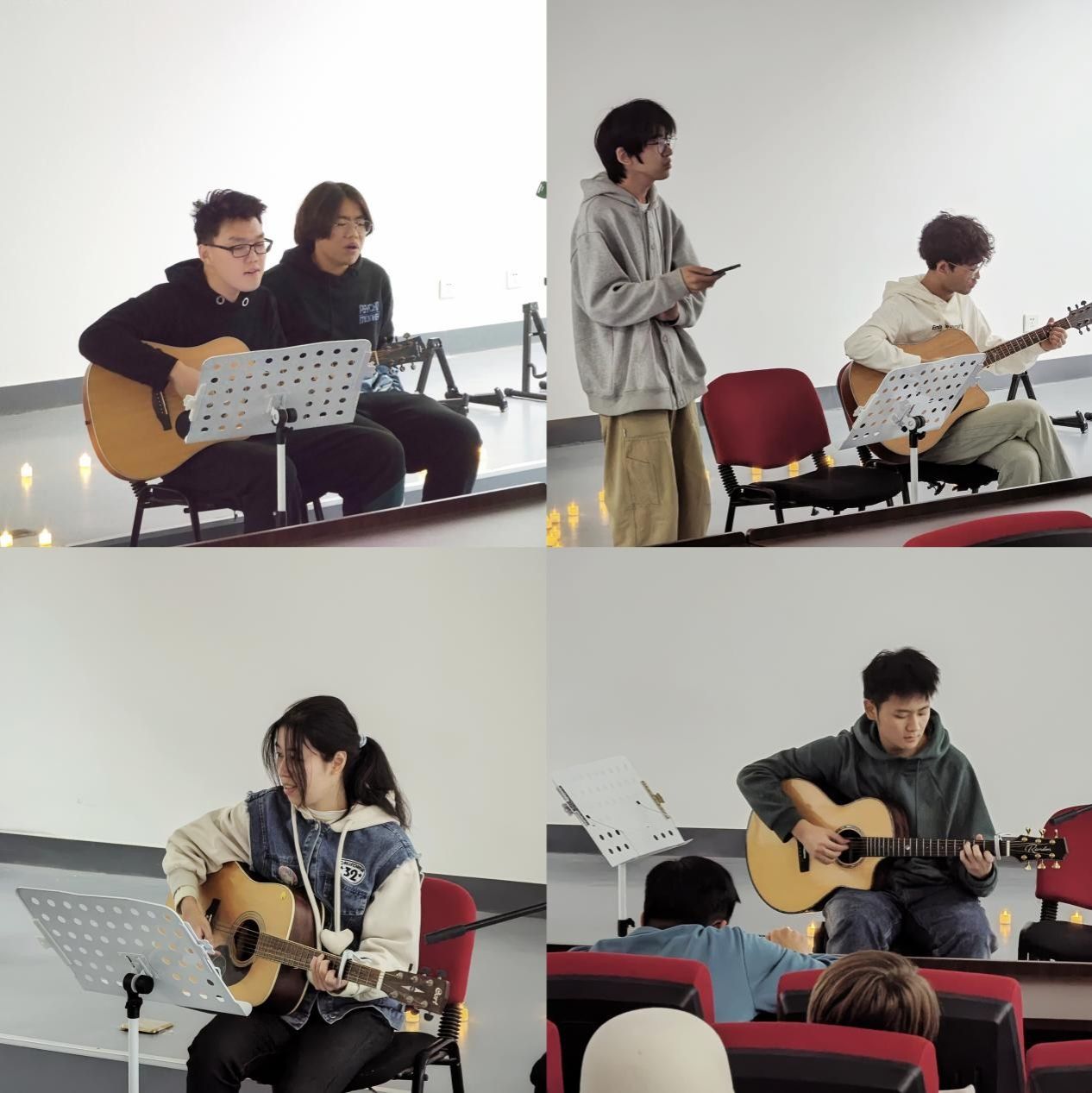 在民谣的旋律中,RelaxTone Hub心理工作坊邀请师生们在轻松愉快的氛围中享受民谣带来的温暖与治愈,在音乐的启发下更好地面对学习生活中的压力与挑战,保持健康向上的精神状态。民谣吉他社的同学们以木吉他为伴,浅吟低唱,演绎了一首首经典清新的民谣歌曲。