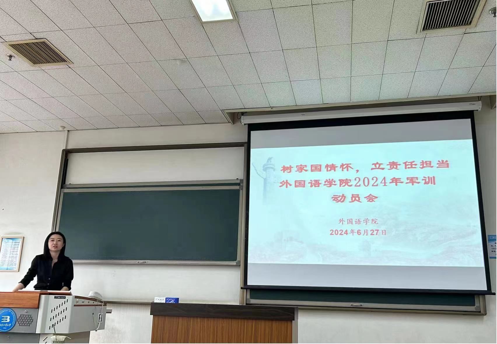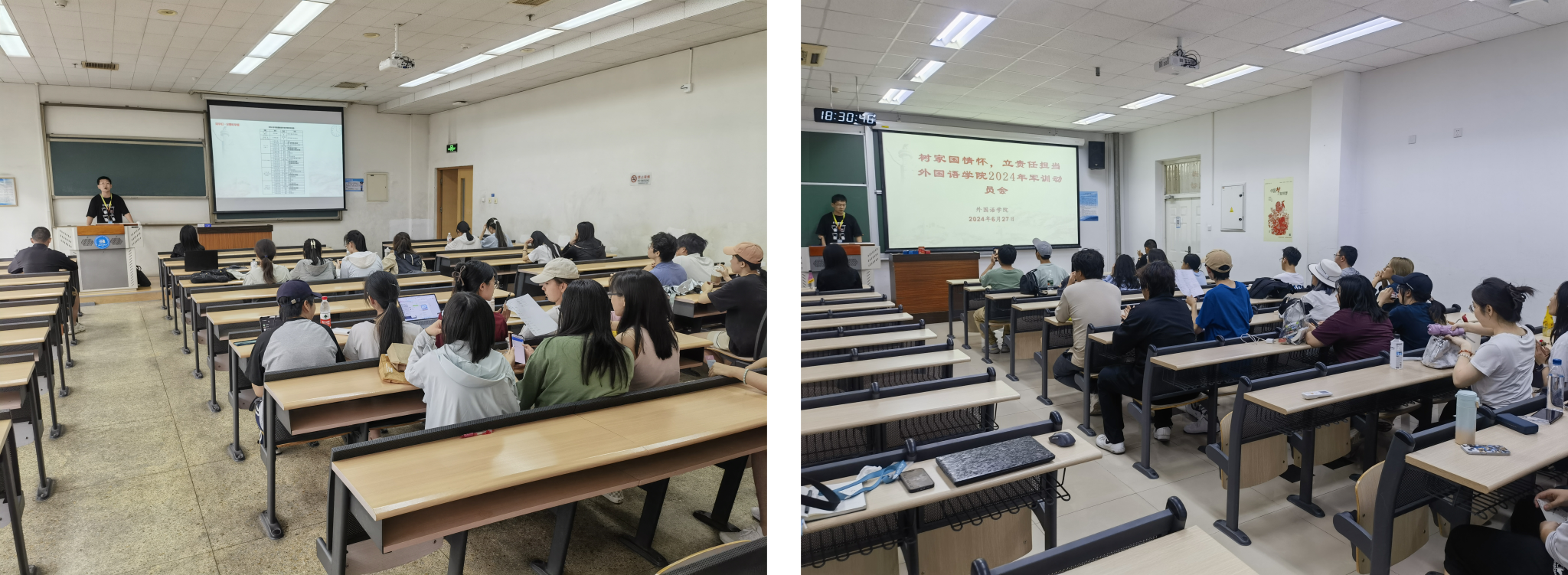 6月27日,yl23455永利集团在平乐园校区三教318、通州校区汲学楼203召开以“树家国情怀,立责任担当”为主题的2022级、2023级军训动员会暨征兵宣讲会。yl23455永利集团党委副书记康晨、2022级和2023级全体本科生参加了本次会议,会议由辅导员郭兆欣主持。