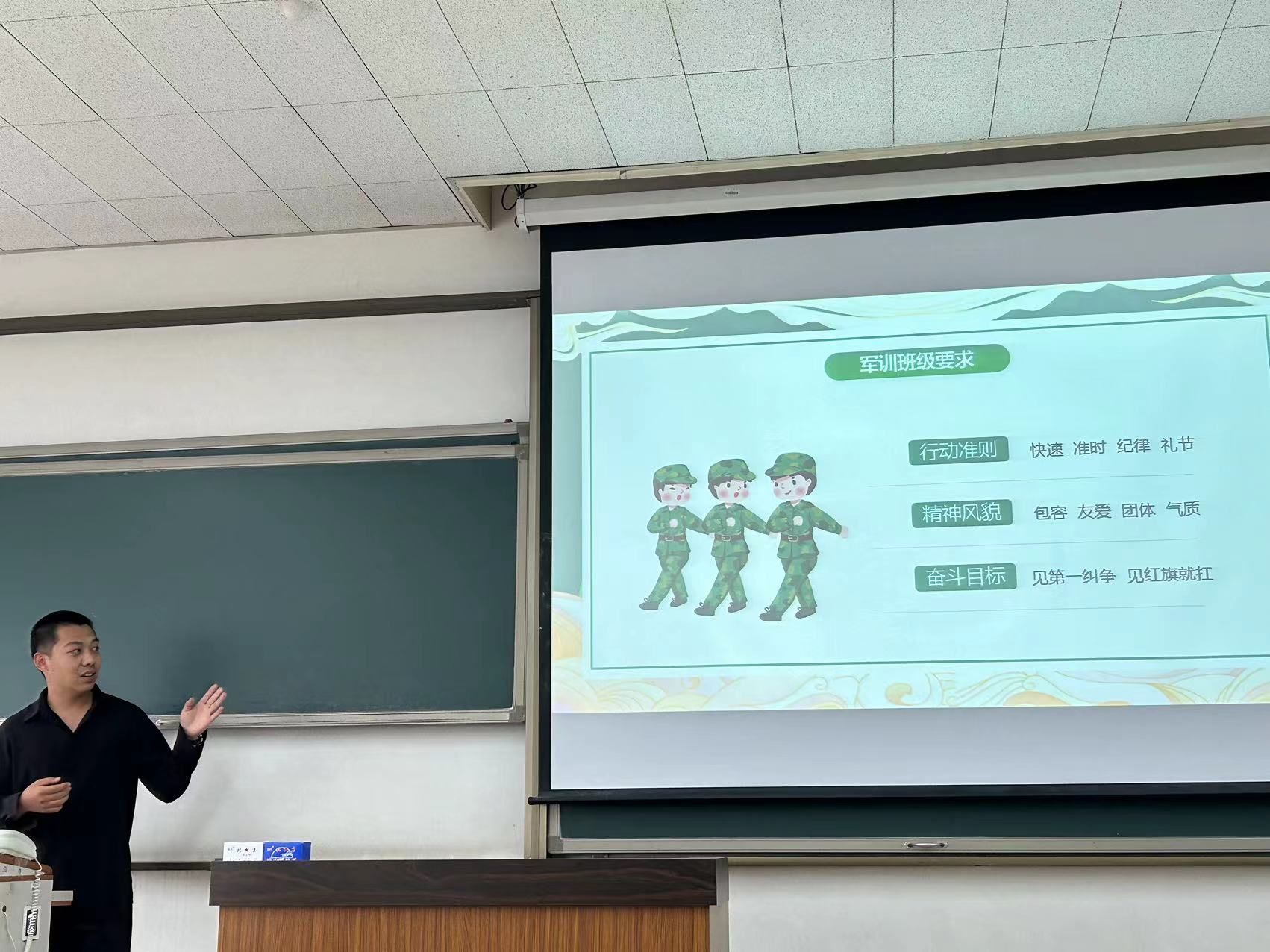 公司邀请马克思主义公司2023级研究生刘新宇为同学们分享自己的服役经历,鼓励同学们在军训中全力以赴,培养“敢为人先、坚韧不拔”的品格,同时为同学们进行了军训期间实用注意事项的提示。