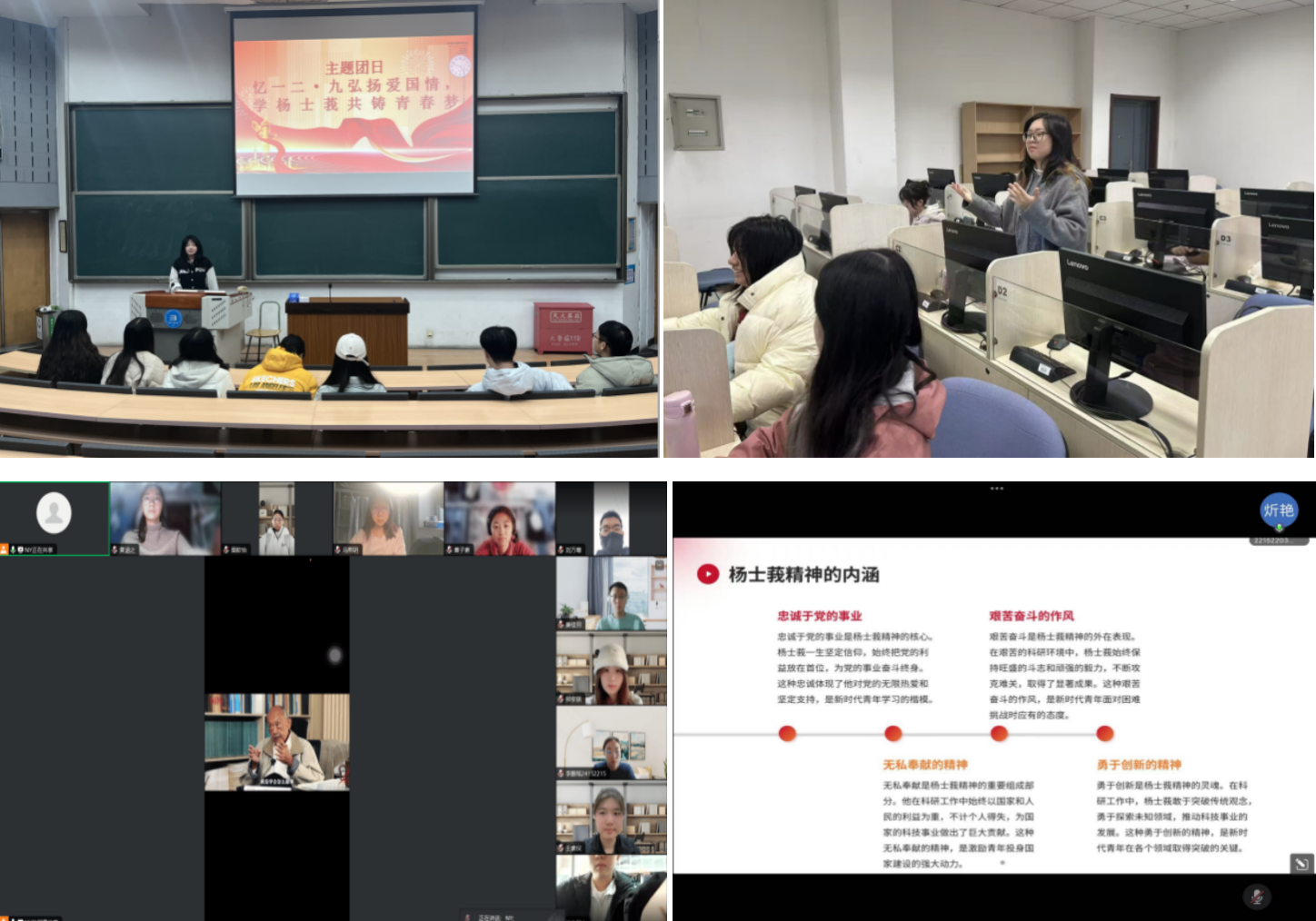 221522团支部通过阅读杨士莪院士相关著作和报道、感受杨士莪院士攻克难题的坚持和他对国家和科研事业的热爱;231522团支部开展读书沙龙活动,通过研读“一二·九”运动相关历史书籍,深入学习“一二·九”运动精神,分享读书收获与对爱国主义精神的理解;241522团支部通过观看《时代楷模发布厅》中关于杨士莪院士的专题节目开展主题讨论,让楷模精神化作砥砺前行的强劲动力;24级外国语言文学团支部组织团员集中观看“一二·九”相关纪录片,随后分组讨论并撰写心得感悟,交流历史与当下爱国精神的传承与践行。