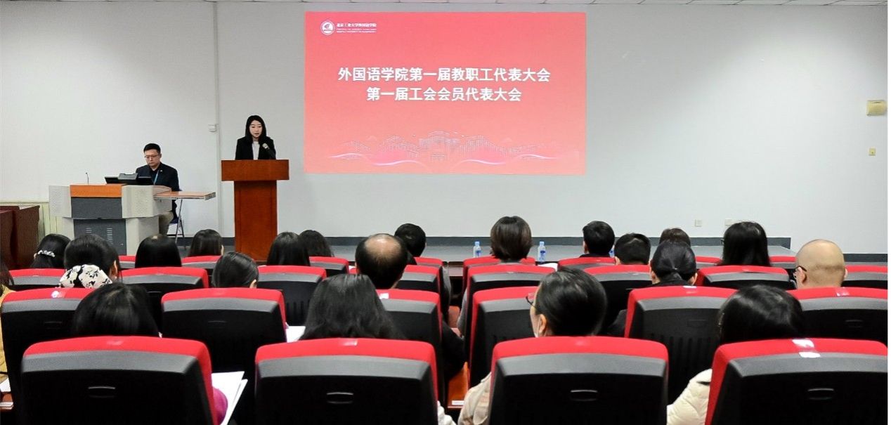 党委书记袁文致开幕词。他向新当选的代表表示热烈祝贺,并向奋战在教学、科研、管理服务一线的全院教职工表示衷心感谢。他强调,要深刻认识工会教代会的重要作用,凝聚广大教职工以主人翁精神投身公司高质量发展;要切实强化两代会代表的作用发挥,聚焦重要领域和关键环节,破解突出矛盾,回应职工关切;要将群团工作与事业发展深度融合,积极发挥外语学科特色优势,主动融入新时代首都发展。