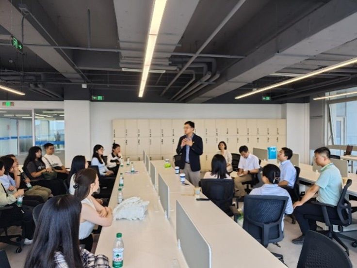 理论学习中心组成员和师生一起参观了创新区办公区,了解创新区管理模式、运行机制和科技产品研发过程,感受科技创新带来的震撼与启迪,进一步强化支部建设与学科专业建设深度融合的意识。通过党建联学和支部共建,进一步深化支部建设与事业发展“双向融合”、人工智能和外语教育跨学科“双向交流”、国际化员工培养与科技创新“双向促进”。